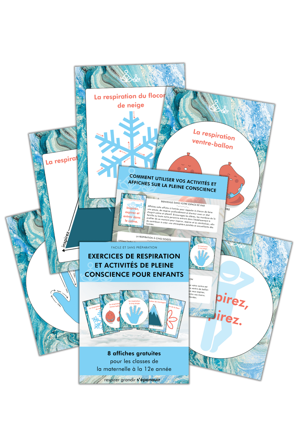 Téléchargez votre livre électronique gratuit, sans préparation, d'exercices de respiration et d'activités de pleine conscience, rempli de stratégies s'apprentissage socio-émotionnel conçues pour la classe de la maternelle à la 12e année et au-delà. À l'intérieur, vous trouverez 8 belles affiches pour vous aider, vous et ceux dont vous vous occupez, à vous rappeler de respirer, de rester calme et de vous concentrer pendant les moments difficiles.